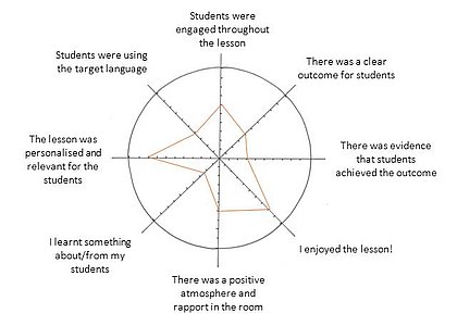 - With the central point of the circle being zero and the outside being ten, mark the degree to which you feel the lesson succeeded in relation to each of the eight factors. Join the dots together.