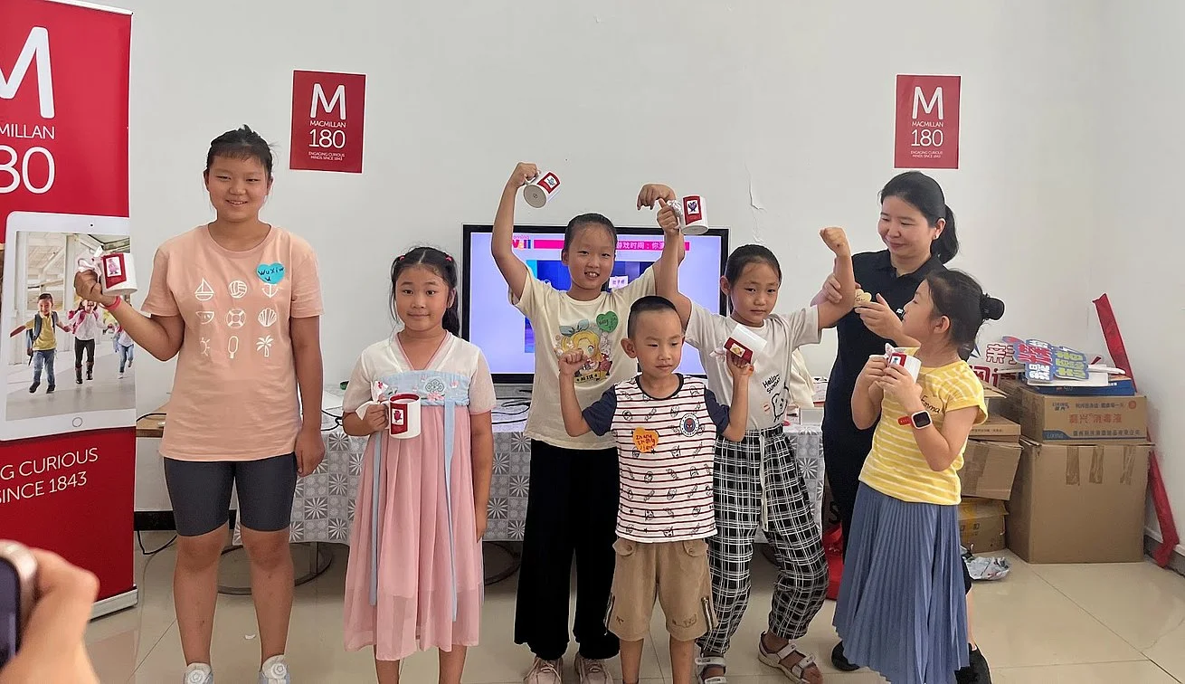 The champions emerged from Yoyo's group. Their happiness spread to everyone as they proudly took their prize, a Macmillan mug decorated with the Wellies logos. It showed how motivation can make learning exciting.