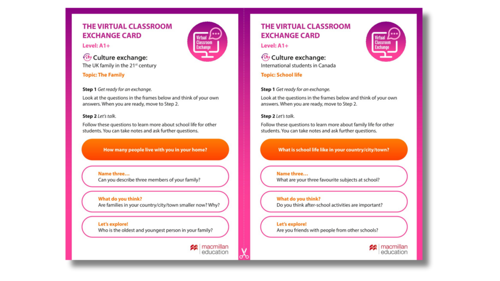 In the Teacher’s Resource Centre of your Macmillan Education Teacher’s App you can find hints and tips and plenty of resources on how to get the best out of the Virtual Classroom Exchange.